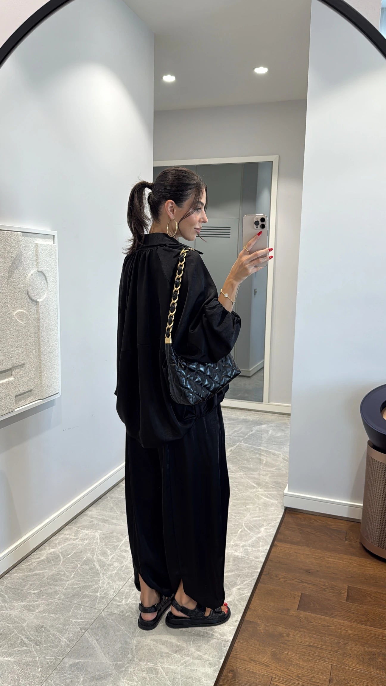 Where modern elegance meets everyday comfort — this satin set adds a sophisticated touch to your wardrobe with its fluid silhouette and luxurious sheen. The bomber jacket brings a sporty edge, while the relaxed-fit pants ensure all-day freedom of movement. Perfectly versatile, it can be styled casually with sneakers or dressed up with heels for an evening look.